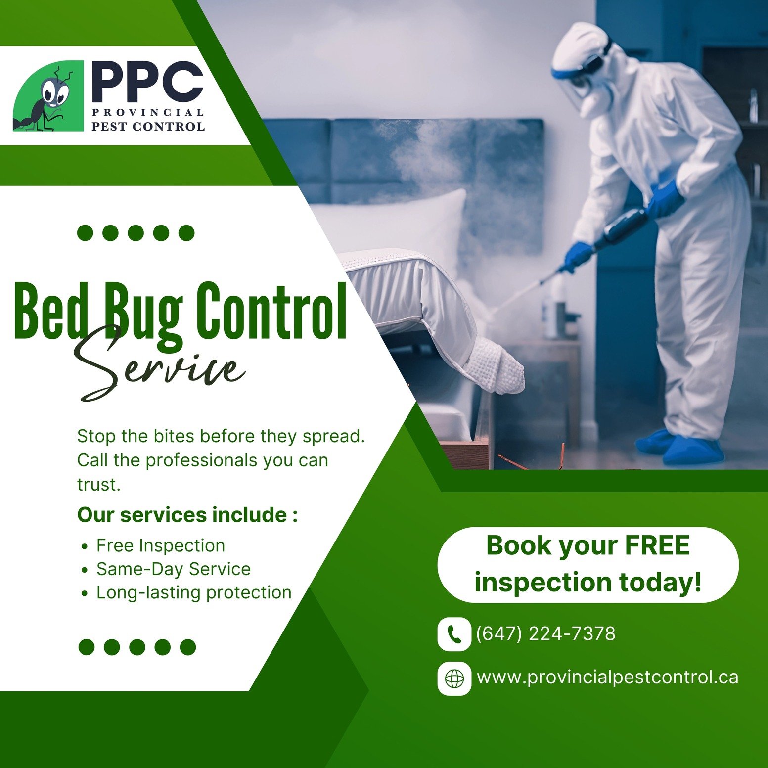 Provincial Pest Control is proudly Toronto premier choice for pest control. We provide safe, fast and effective pest control in both domestic and commercial environments. Our highly trained Pest Control Technicians are skilled to identify and eradicate all pests.